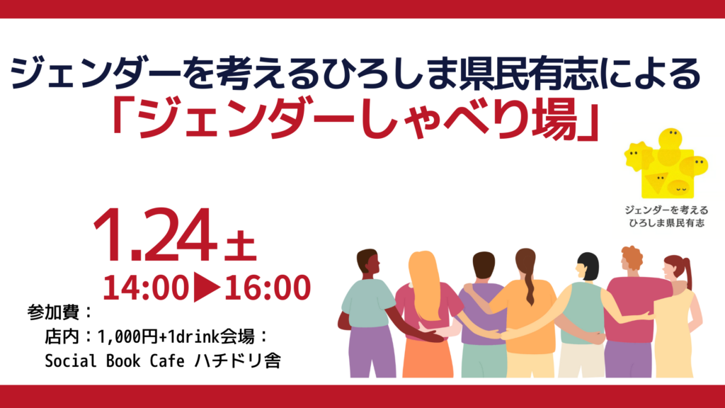 ジェンダーを考えるひろしま県民有志が参加者の皆さんと一緒に、ジェンダー平等、性差別や性暴力、セクハラやモラハラ、日々のモヤモヤ…等についておしゃべりする会です。
