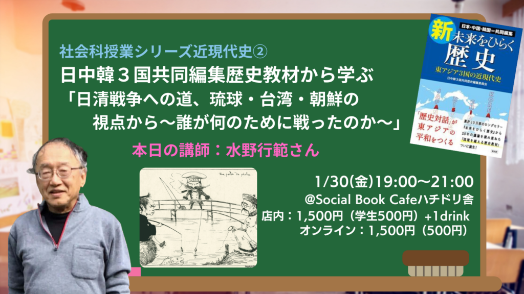 テーマは「日清戦争への道、琉球・台湾・朝鮮の視点から~誰が何のために戦ったのか~」。教室にいるような気持ちで、一緒に授業に参加してみませんか。
