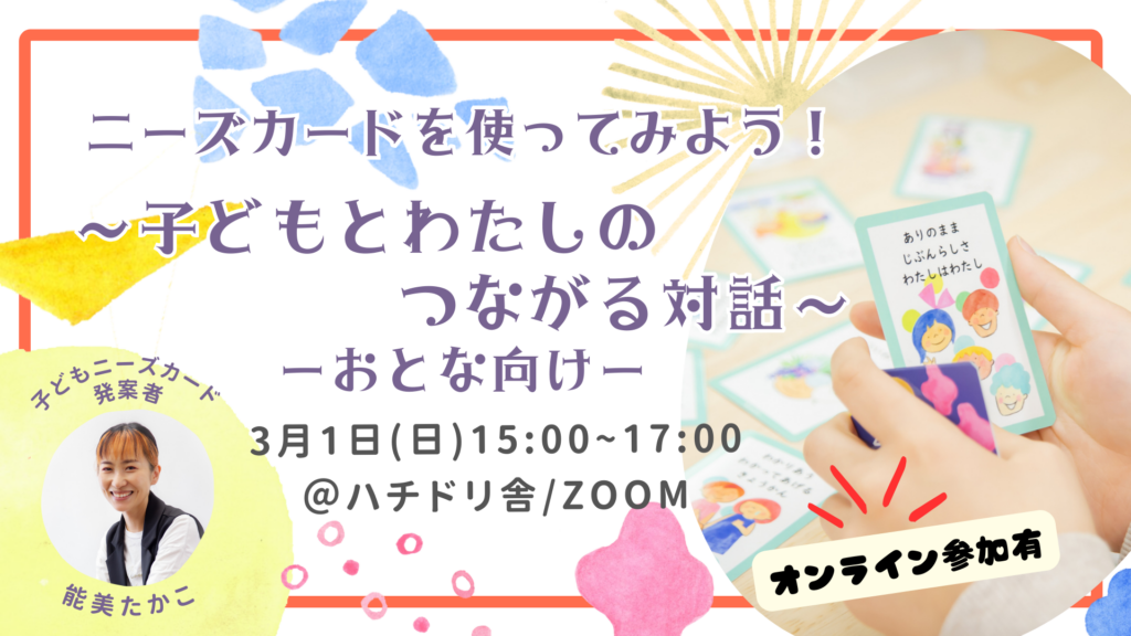興味がある方や、使い方のヒントが欲しい方、「子どもニーズカード」の世界観に触れてみたい方、ぜひお越しください!