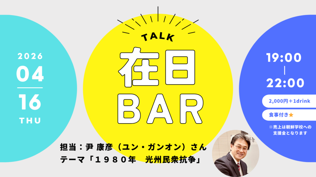 『在日』って聞いたことがあるけどどんな人たちなんだろう?安全な環境で楽しく飲みながら、話してみませんか?どなたでも参加可能です!