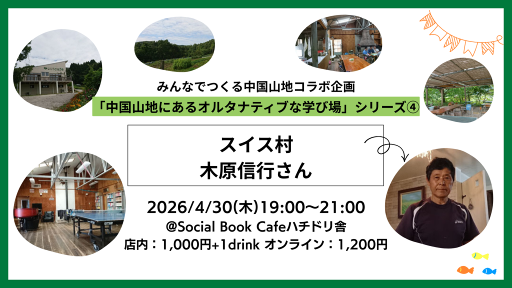 みんなでつくる中国山地コラボ企画 シリーズ「中国山地にあるオルタナティブな学び場」スイス村:木原信行さん